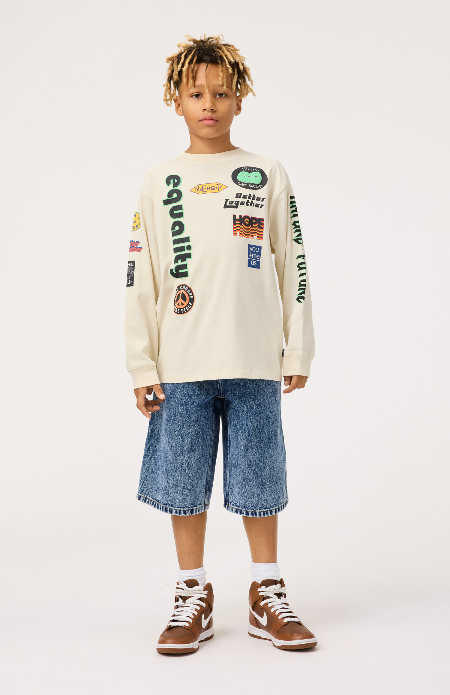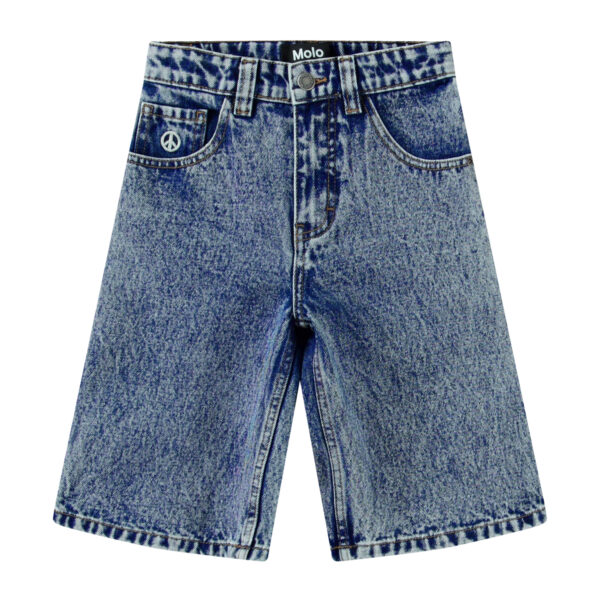 Descrizione: Shorts lunghi in denim blu in cotone biologico. I pantaloncini hanno una vestibilità ampia, arrivano fino agli stinchi e hanno tasche sui lati e tasche posteriori. La cintura può essere regolata con un elastico interno, garantendo una vestibilità perfetta per tutti i bambini. Le taglie dalla 92 alla 134 hanno un bottone automatico, rendendo facile indossare e togliere i pantaloncini, mentre le taglie dalla 140 alla 176 hanno un bottone per jeans normale.