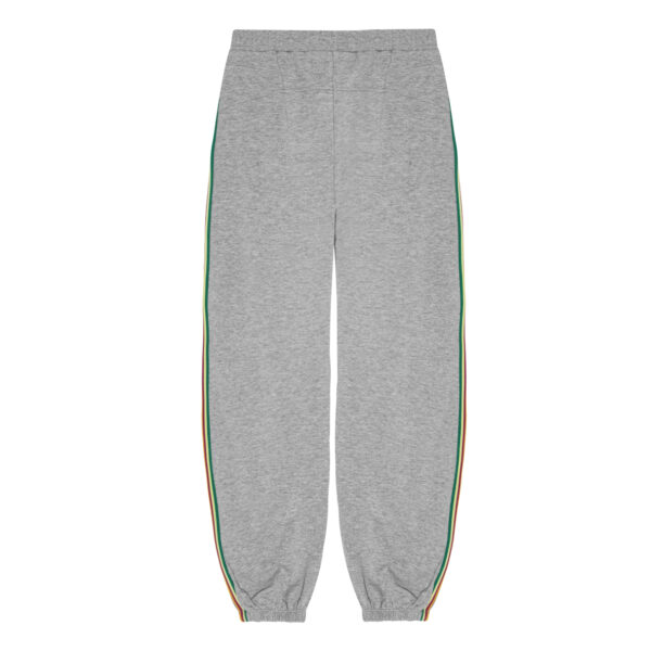 Descrizione: Pantaloni in jersey grigio in cotone biologico con interno non spazzolato, che li rendono piacevolmente freschi da indossare nelle giornate calde. I pantaloni hanno una vestibilità regolare e un elastico in vita e sulla gamba. Le strisce lunghe e lati rendono omaggio ai Giochi Olimpici e conferiscono ai pantaloni un aspetto sportivo. Abbinali a un maglione coordinato per un set completo.