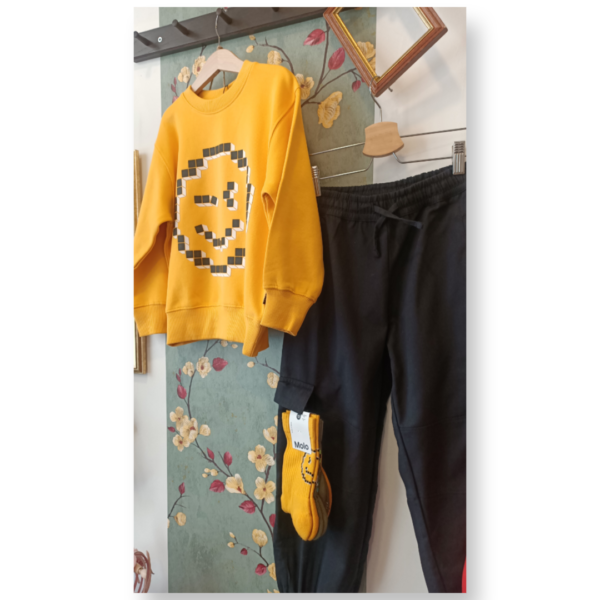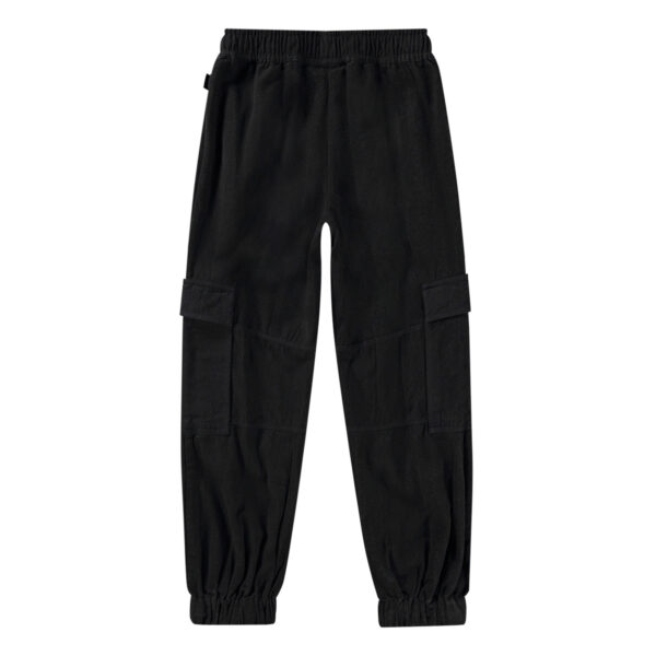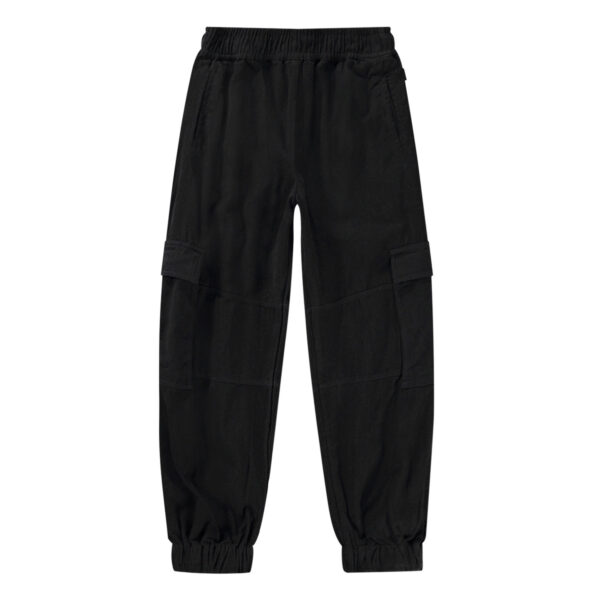 Descrizione: Pantaloni cargo neri larghi realizzati in cotone biologico con elastico in vita e polsini per una vestibilità elegante e rilassata. Questi pantaloni hanno cuciture decorative e pulite sulle ginocchia, ampie tasche cargo sui lati e una coulisse interna in vita per una vestibilità comoda per tutti i bambini. Questo prodotto Molo è certificato GOTS